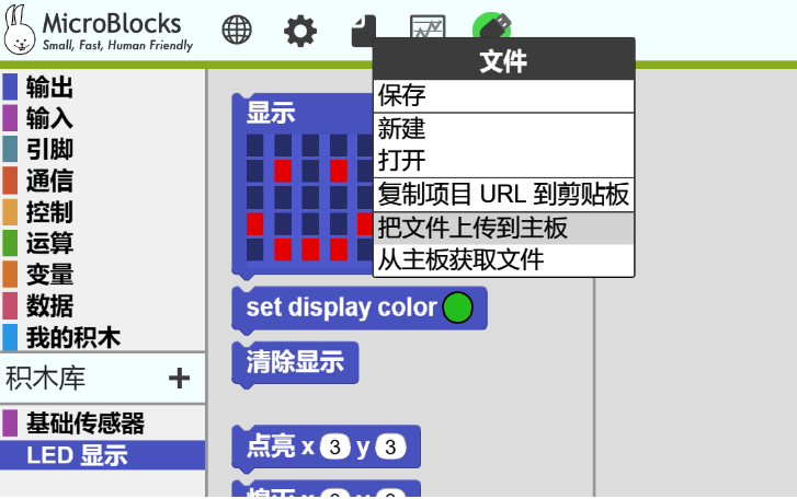 这将使“把文件上传到主板”和“从主板获取文件”命令出现在“文件菜单”内。